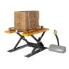 Su plataforma de 1450 x 1140 mm puede acomodar palets de tamaño estándar con un peso máximo de 1000 kg. Esta mesa elevadora se coloca directamente en el suelo, y su altura máxima de elevación alcanza los 850 mm cuando sus tijeras están completamente desplegadas. La elevación y el descenso de la mesa se realizan de forma eléctrica con una enchufe industrial de 220 V. Gracias a su panel de control remoto, la altura de la plataforma se puede ajustar con precisión de centímetro en centímetro. Se necesitan 18 segundos para elevar la carga a la altura máxima.